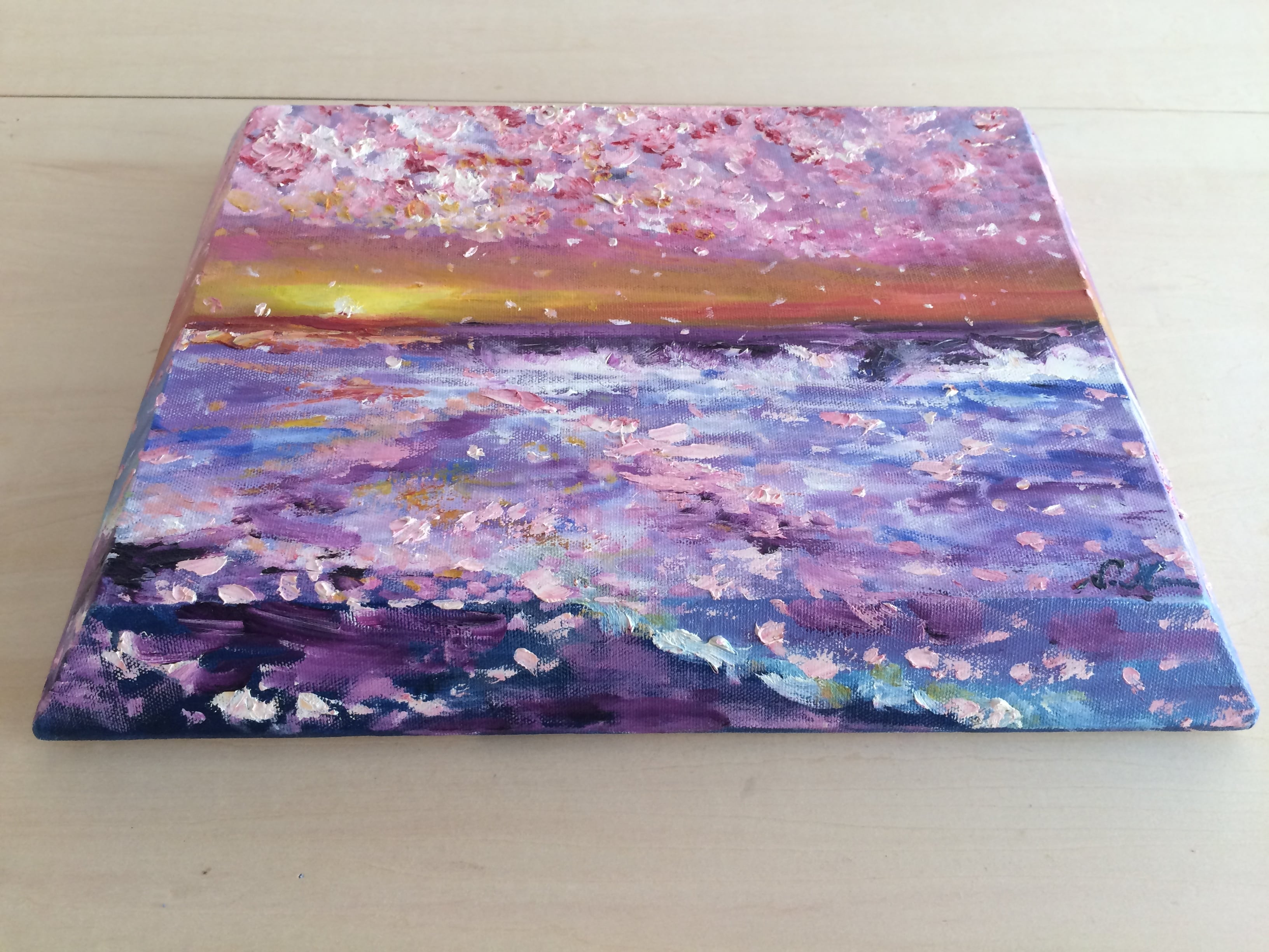 F4 33.3x24.2cm立体キャンバス 油彩 海に舞う 桜前線 春便り